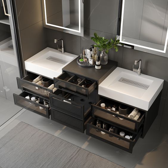We understand that storage is key in a well-designed bathroom. Our custom vanities and cabinets provide the perfect blend of style and functionality. Whether you need additional counter space or innovative storage solutions, our designs are tailored to fit your space and reflect your personal taste.